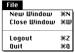 | Logout | Command-Z | Quit windows and return to the Login Console. |
